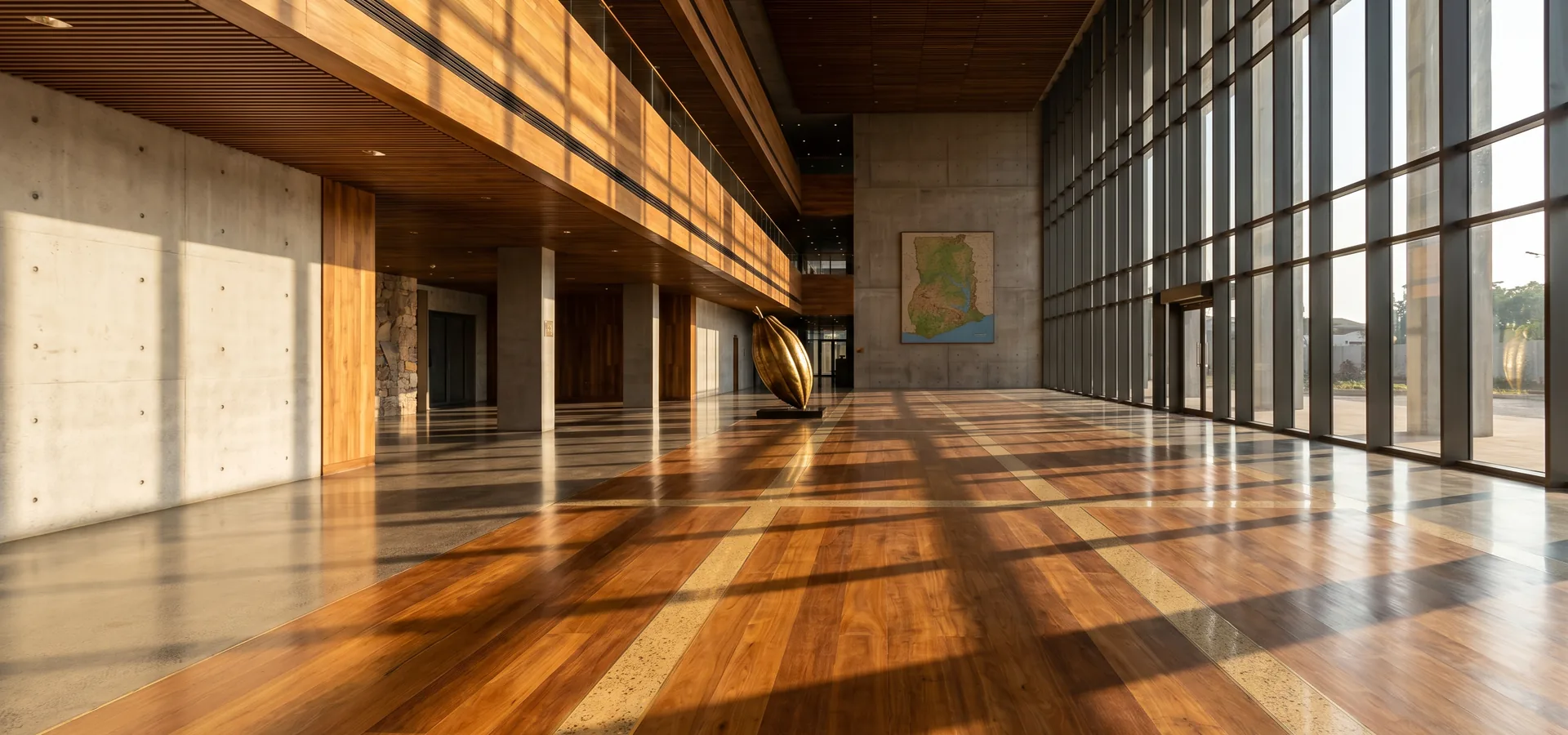 Béton poli mécanique fini miroir Niveau 4 dans le hall d'un hôtel de luxe indépendant. Le béton est devenu l'architecture.